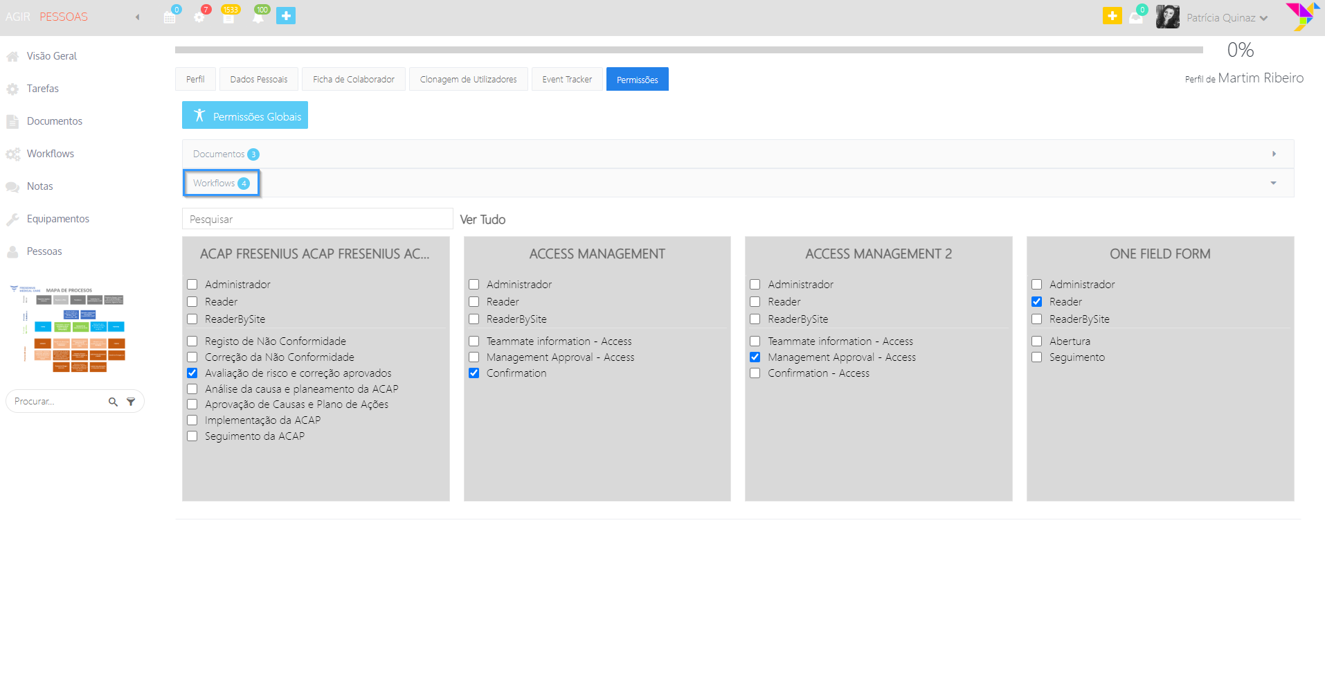 4. Por defeito o AGIR mostra os workflows para os quais o colaborador já tem algum tipo de permissão. Para definir permissões para outros workflows, clique em Ver Tudo.