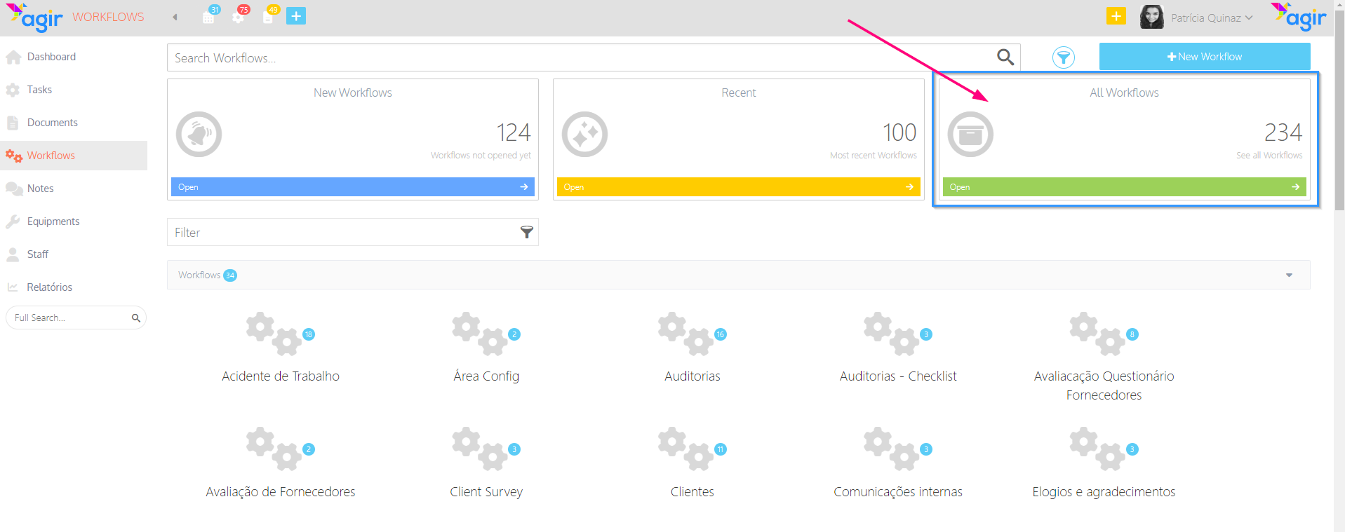 3. A list of records/documents corresponding to the category you chose will appear. In the example below, all existing workflow records are listed.