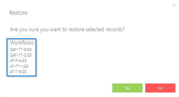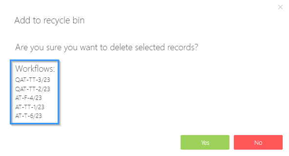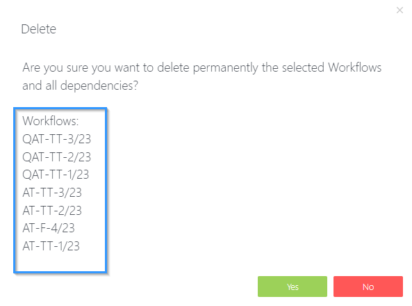 3. To confirm the deletion of documents/process workflows, click on Yes. The selected documents/process workflows will be deleted.