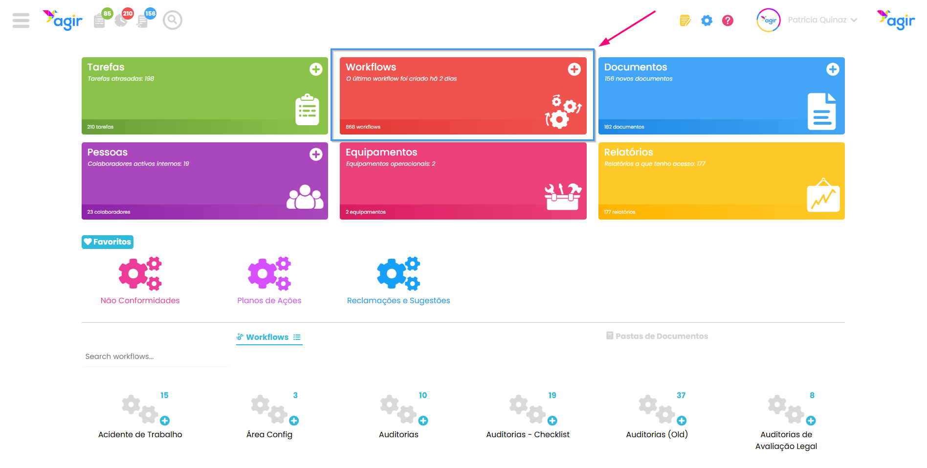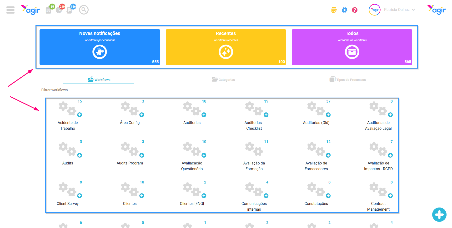 Pode escolher uma das categorias acima ou aceder a uma listagem de um workflow específico.