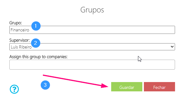 4. Atribua um nome ao grupo e escolha um surpervisor. Pode ainda associar o grupo a uma empresa específica (recomendado apenas para ambientes em que haja divisão do AGIR por empresa). Clique em Guardar.