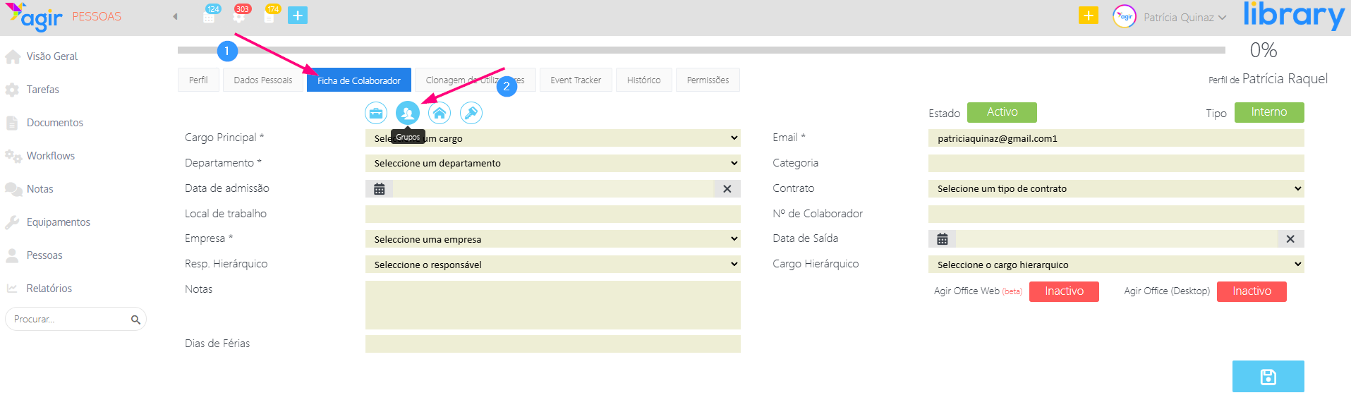Associar um utilizador a um grupo, a partir da ficha de colaborador