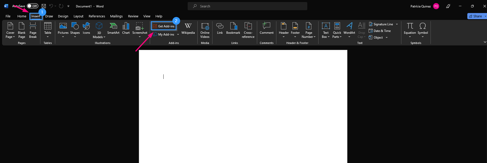 1. Open one of the Office applications, click on the Insert tab, then click on Get Add-ins.