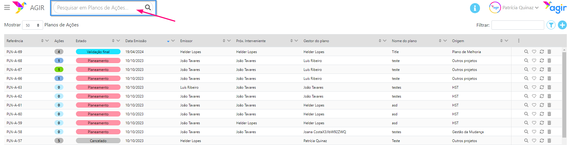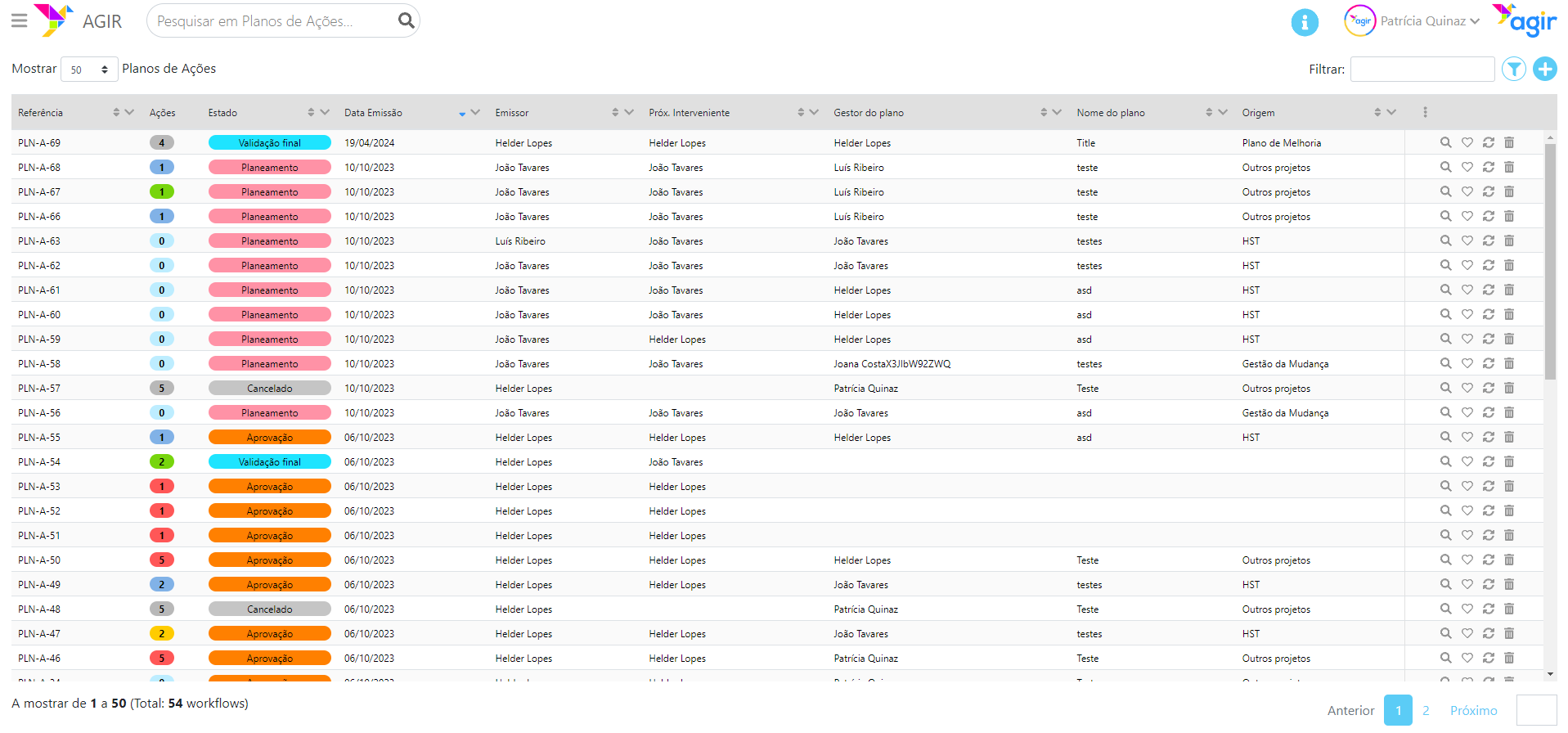A datagrid/listagem de workflows foi renovada com inúmeras melhorias, incluindo uma nova forma de filtrar estas listagens.