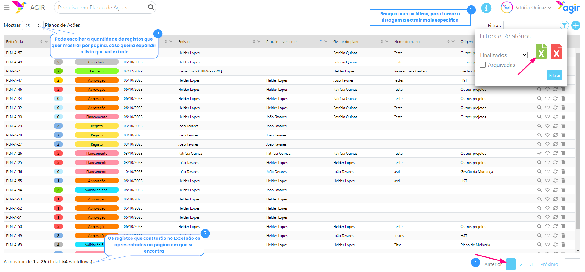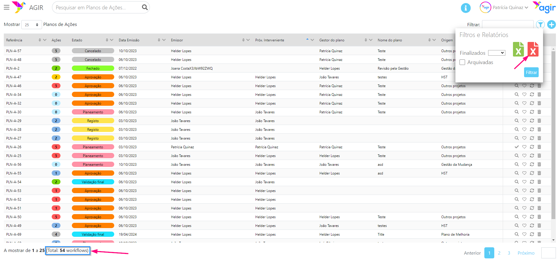 3. Caso pretenda extrair a totalidade dos registos existentes na listagem deste workflow (neste caso, os 54), basta clicar no ícone vermelho.