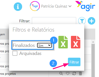 4. Dentro deste menú, pode ainda filtrar por registos finalizados ou por finalizar. Para isso, selecione no campo Finalizados: Sim ou Não e clique em Filtrar para aplicar.