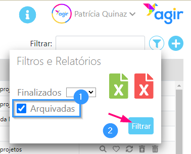 5. Para aceder aos registos arquivados, selecione a checkbox Arquivadas e clique em Filtrar. Os registos arquivados serão apresentados.