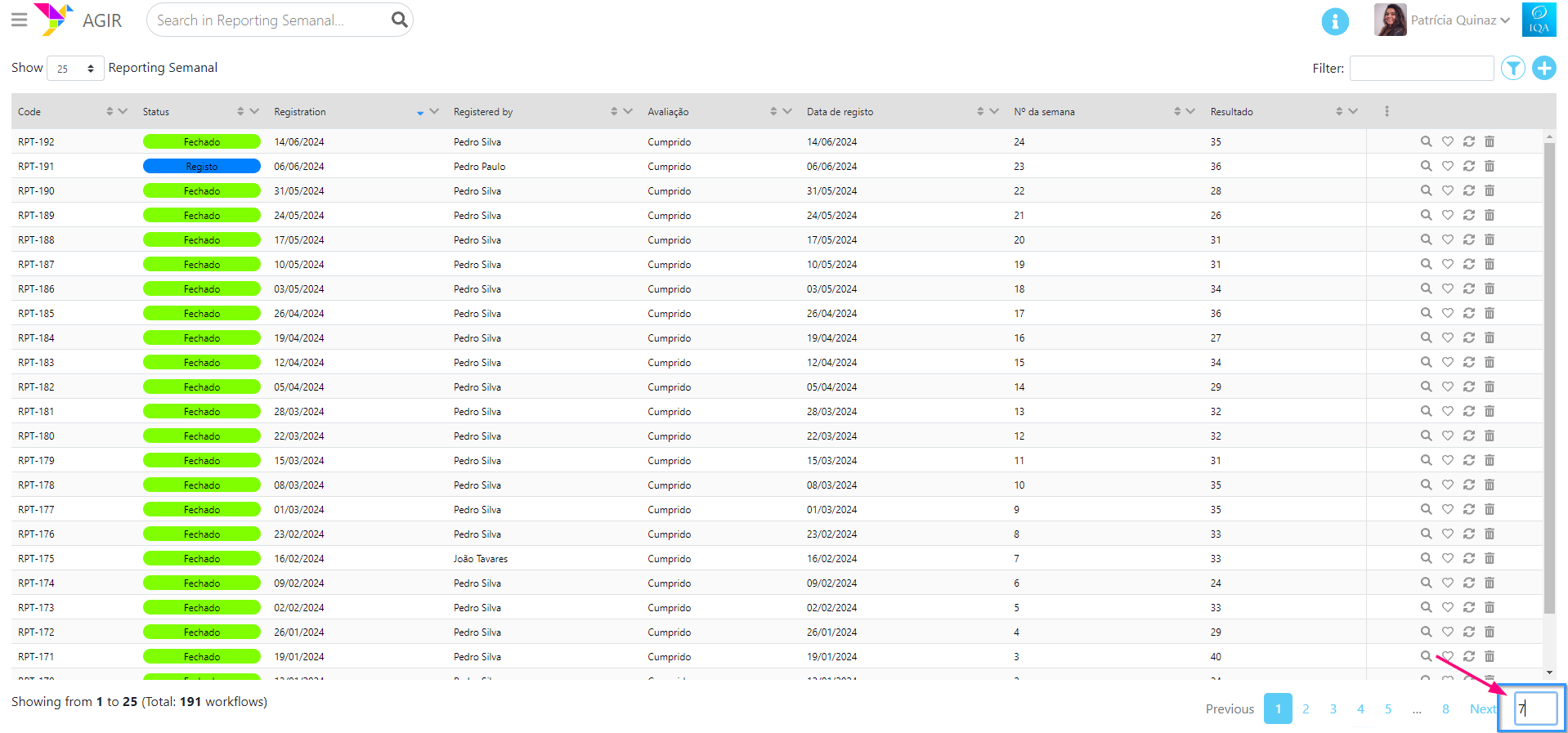 Por vezes a listagem de workflows pode ser longa e, inevitavelmente, apresentada em várias páginas. Nem todas as páginas poderão estar visíveis para aceder diretamente.