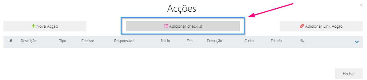 3. Clique em Adicionar, para criar uma nova checklist de ações.