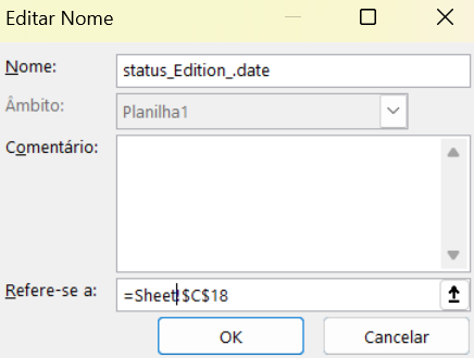 Selecionamos o separador/folha no qual nos encontramos no campo Âmbito (Passo 2 - neste caso específico, será o Sheet 1/Folha 1, este passo é muito importante. Se deixarmos no valor "Livro", não vai funcionar).
