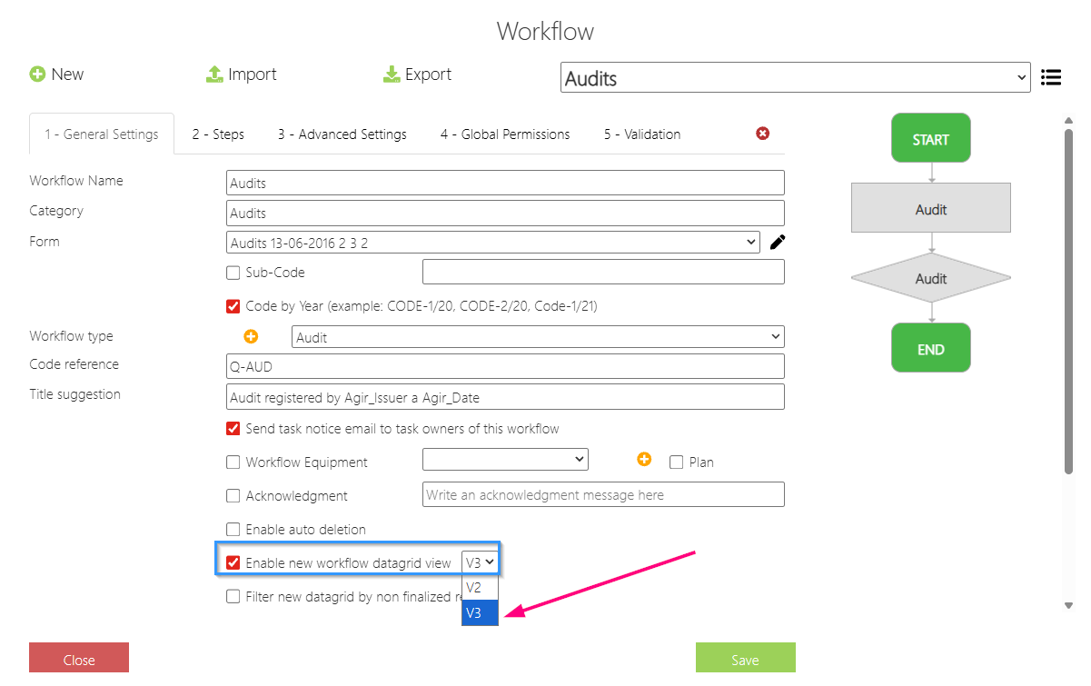 Follow the steps below to learn how to activate version 3 of the Workflows datagrid.