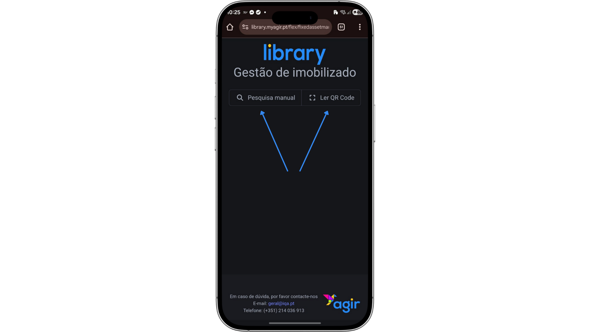 Ao clicar em ler o QR Code, o AGIR pedirá permissão para aceder à sua câmara. Deve conceder esta permissão de forma a que seja possível utilizar esta funcionalidade.