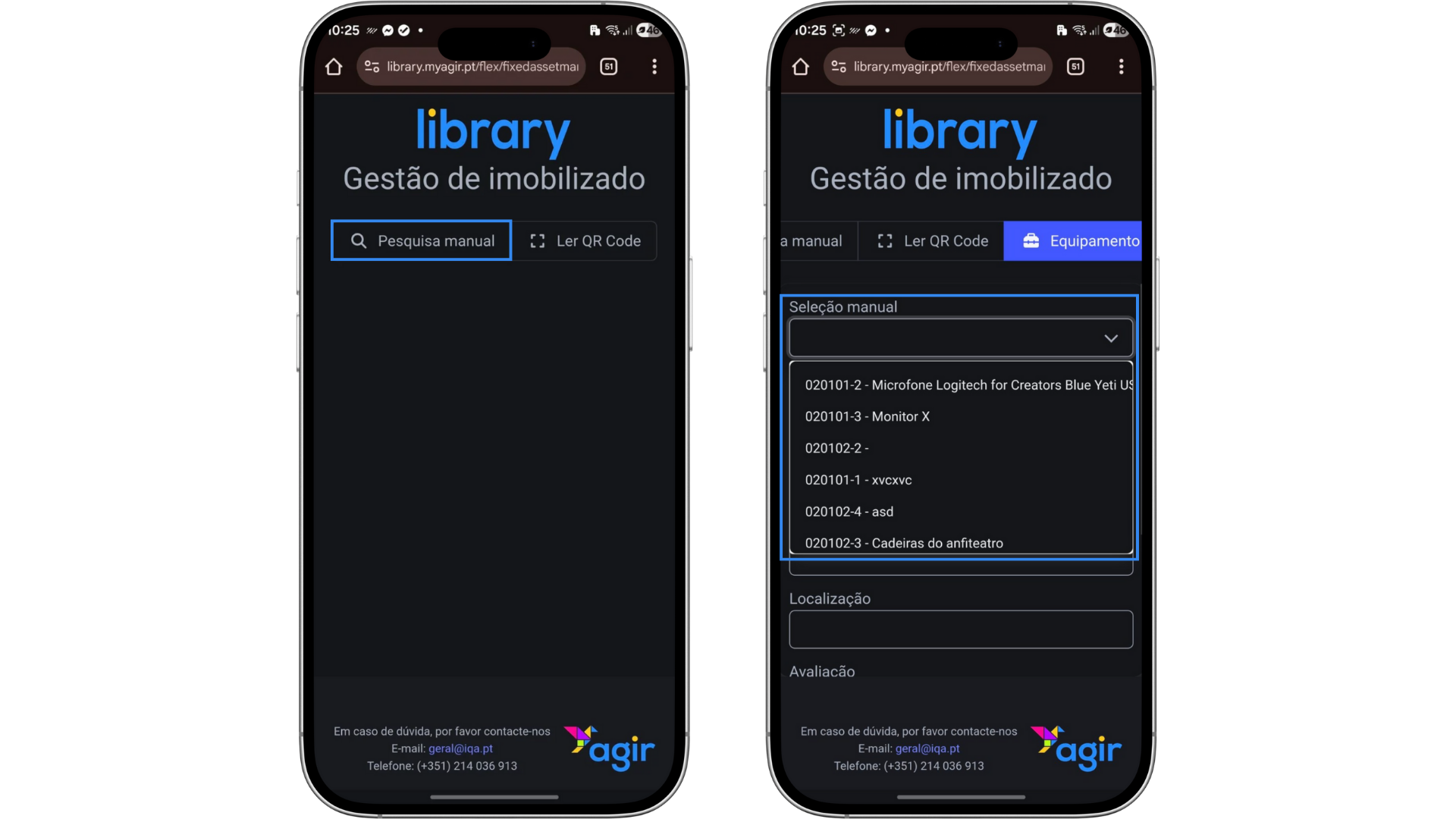 - Pesquisar o imobilizado manualmente, permitindo selecionar o imobilizado da lista de imobilizados registados no AGIR;