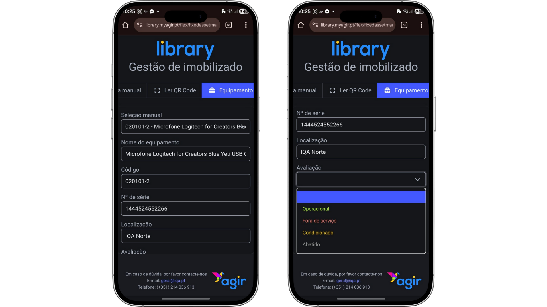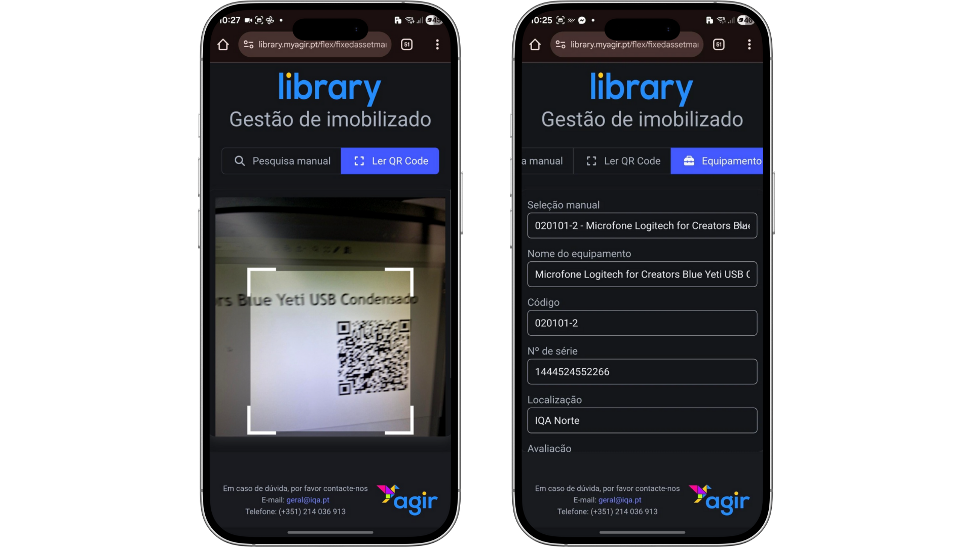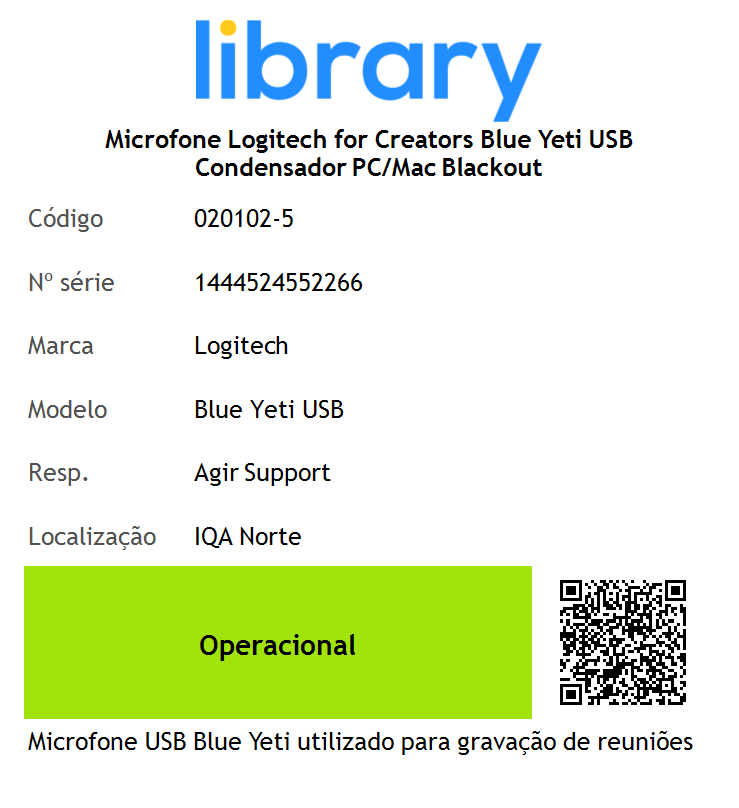 Ao ler o QR Code presente na etiqueta do imobilizado, todos os seus dados (se preenchidos no AGIR) são automaticamente apresentados.