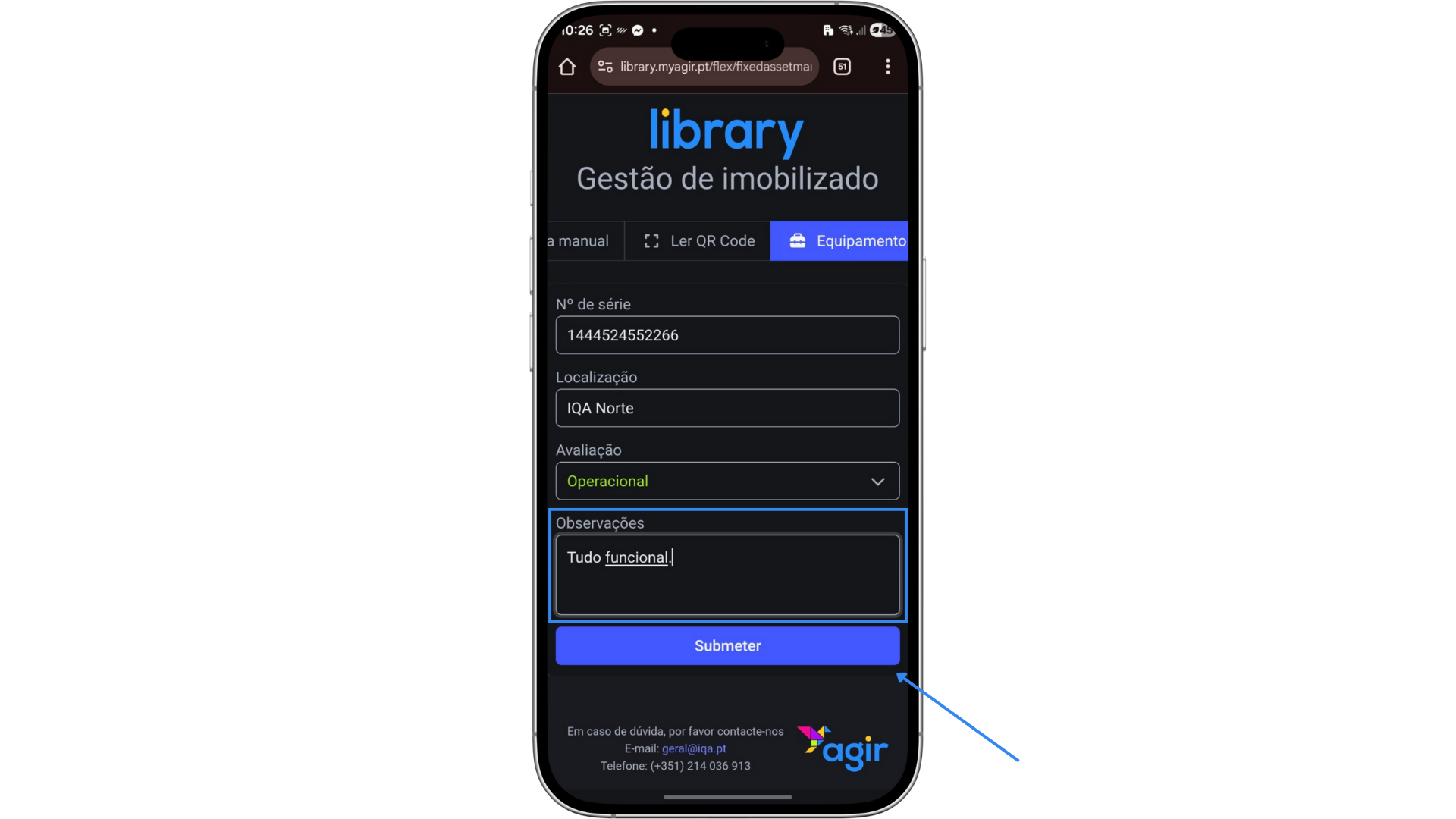 A aplicação móvel do AGIR permite realizar monitorizações diretamente no local.