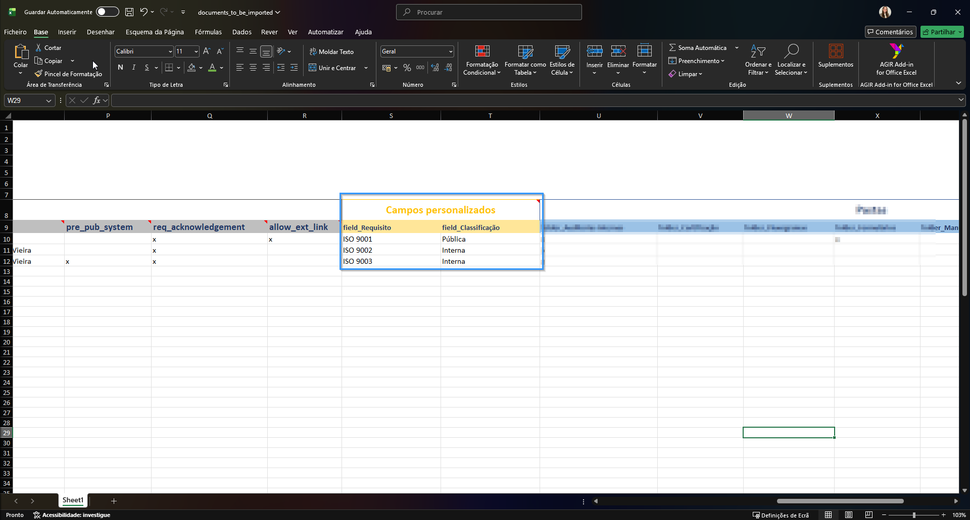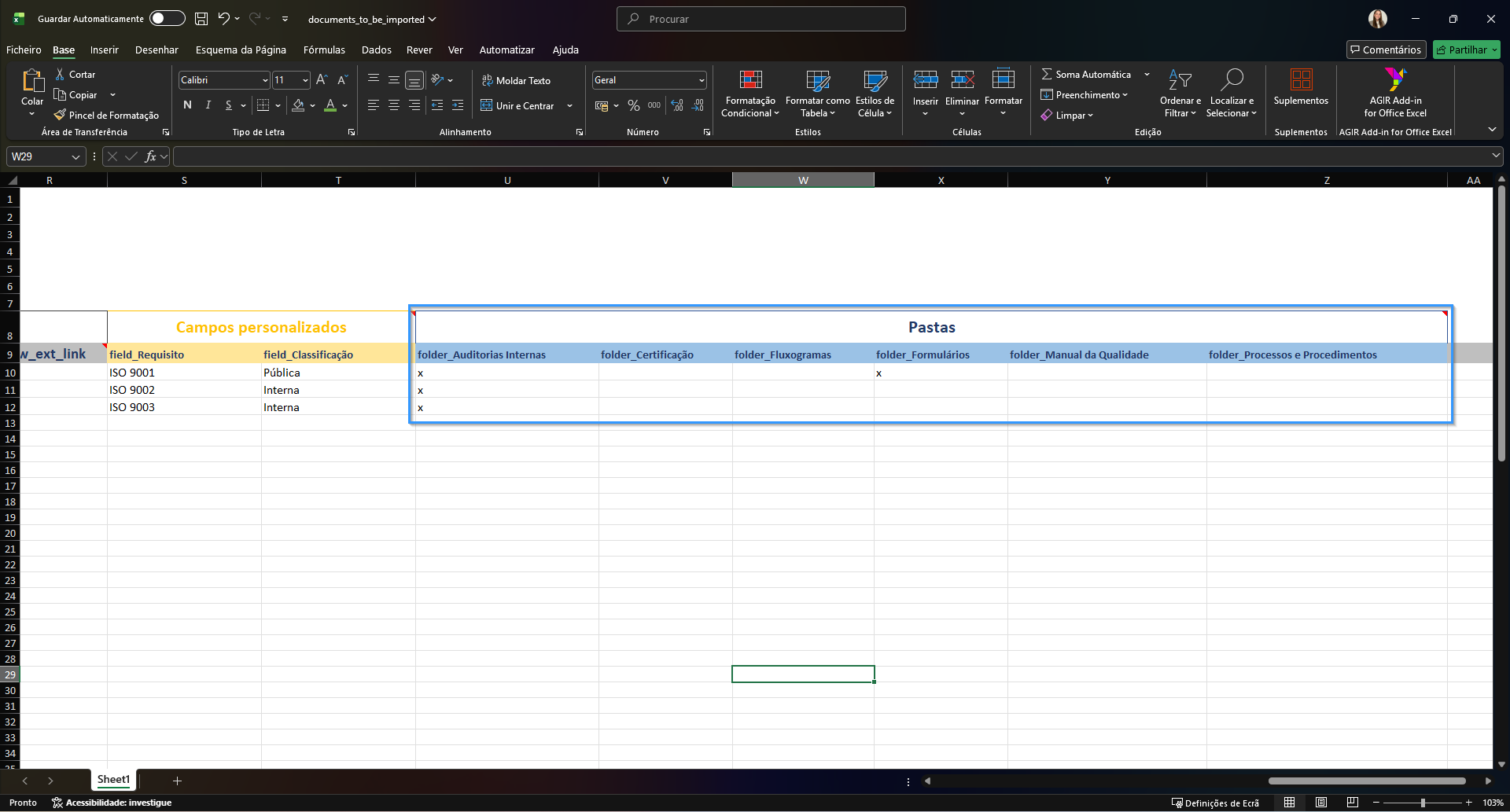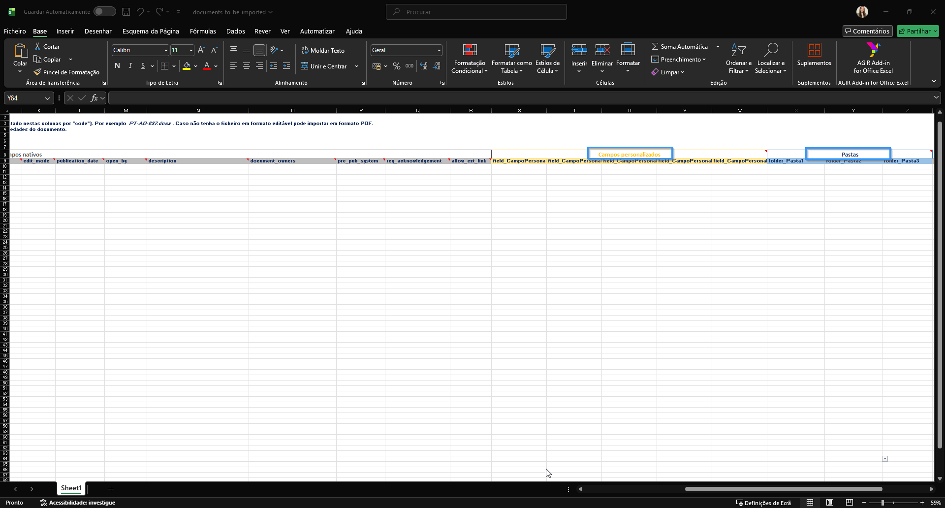 No ficheiro que lhe disponibilizamos, estes campos já estão alinhados com o seu AGIR, pelo que deverá apenas preenchê-los quando fizer sentido para o documento em causa.