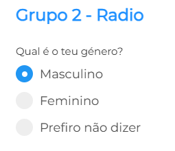 Apresenta um conjunto de opções em que o respondente pode selecionar apenas uma resposta. É ideal para perguntas de escolha única.