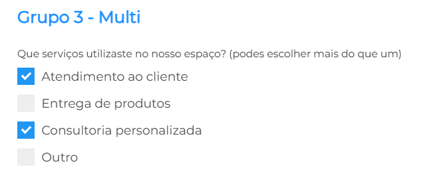 Permite a seleção de mais do que uma resposta entre várias opções disponíveis. É indicado quando a pergunta admite múltiplas escolhas.