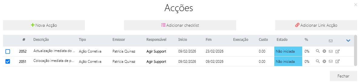 Criar Ações Correctivas e/ou Preventivas, definindo responsáveis e prazos