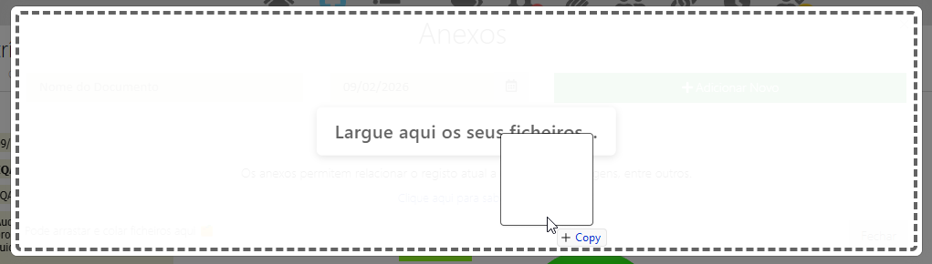 Clique em Adicionar novo ou arraste os ficheiros para a janela de Anexos.