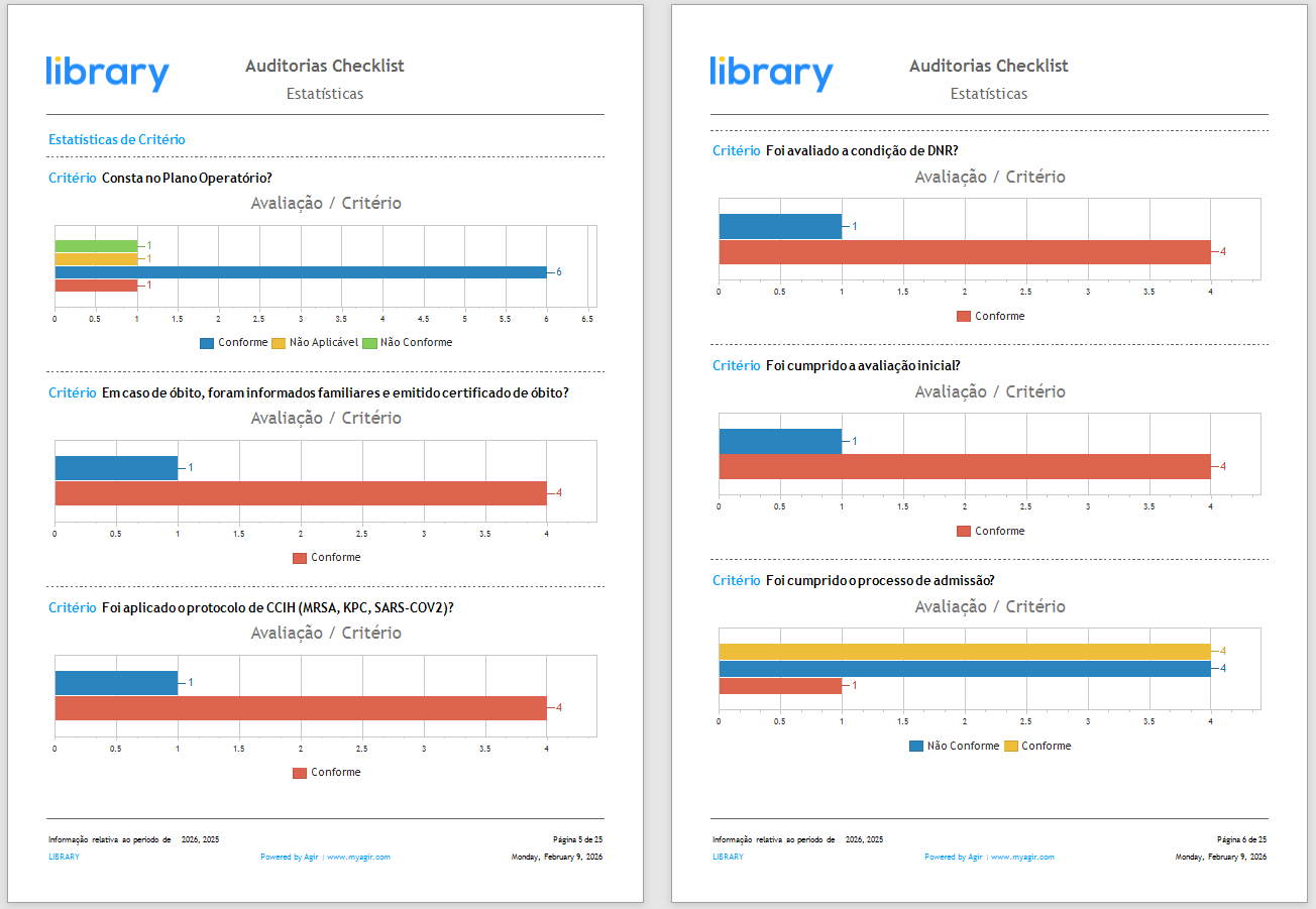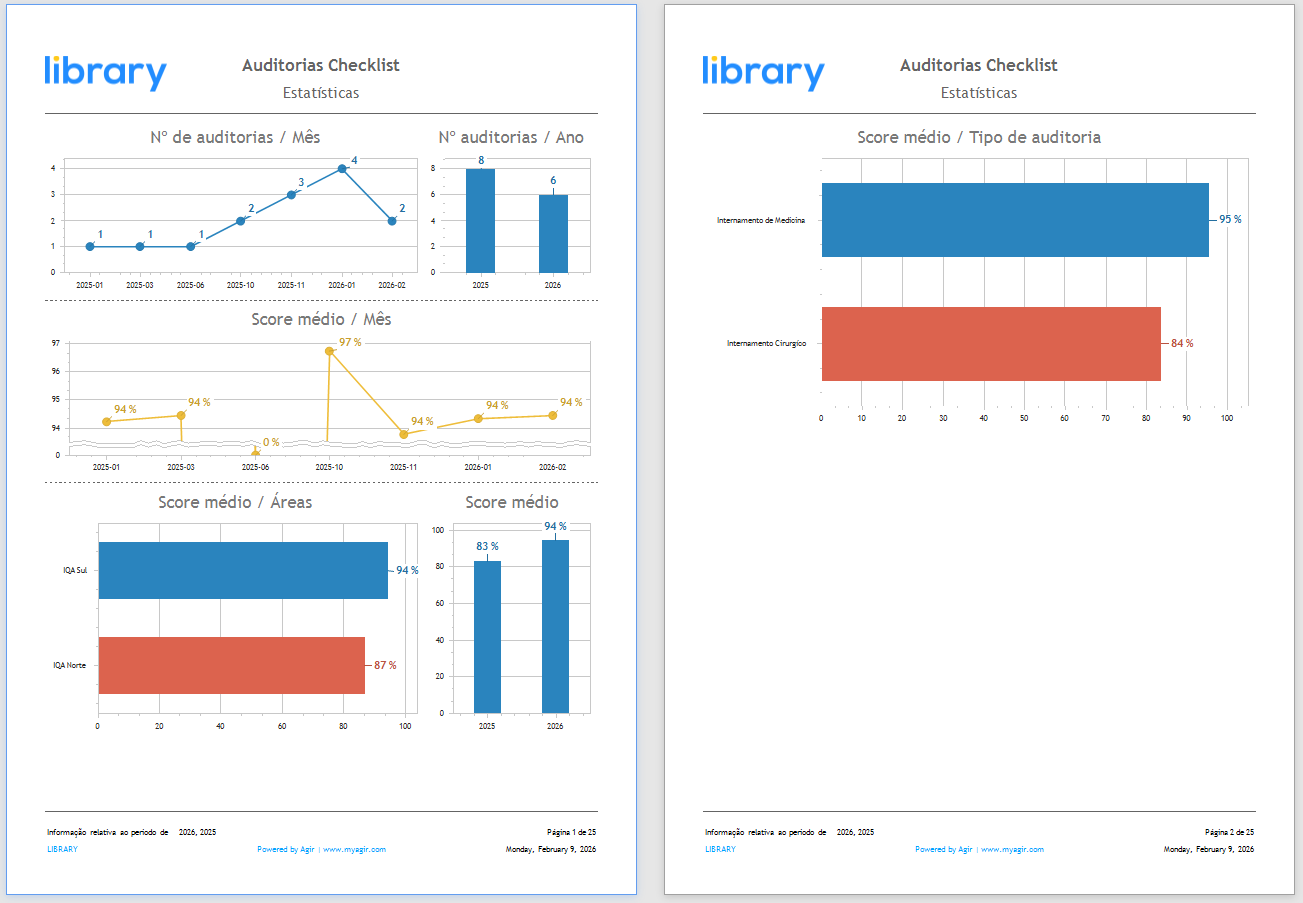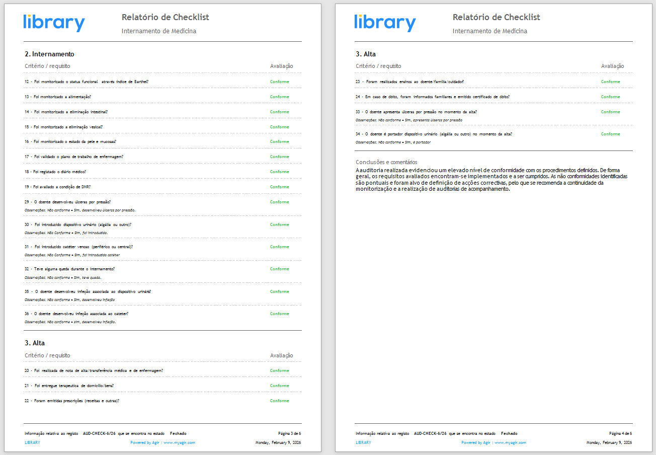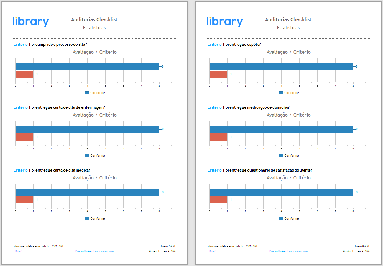 O Workflow Auditorias - Checklist disponibiliza relatórios que permitem extrair informação estruturada sobre as auditorias realizadas.